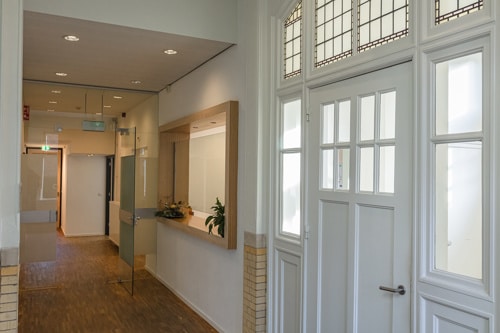 De praktijk is gevestigd in een stijlvol oud gebouw dat schitterend gerenoveerd is en voorzien van ruime spreekkamers.